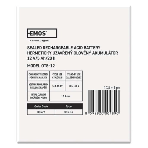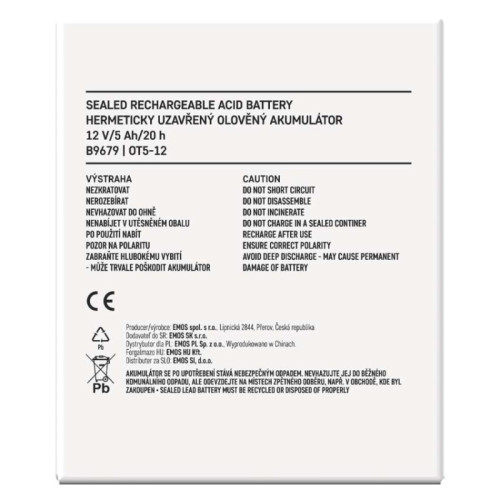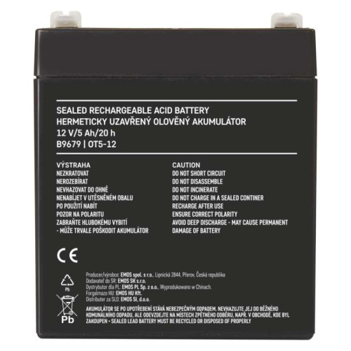 Bezúdržbový olovený akumulátor 12 V/5Ah, faston 6,3 mm