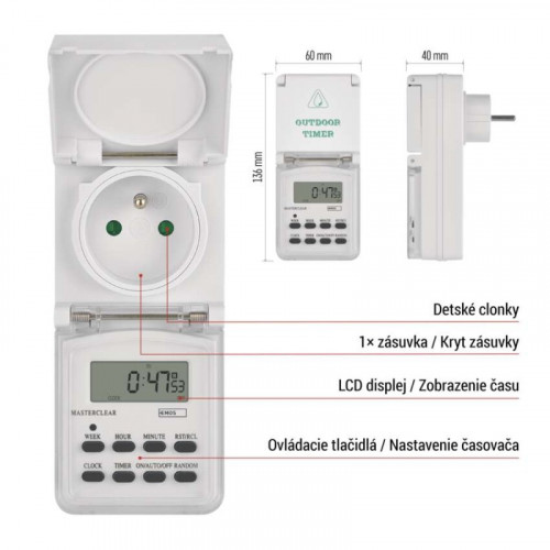 Časovač – digitálna spínacia zásuvka vonkajšia IP44