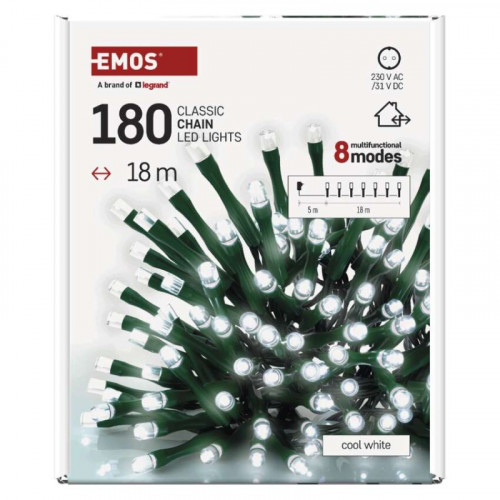 LED vianočná reťaz, 18 m, vonkajšia aj vnútorná, studená biela, programy, časovač