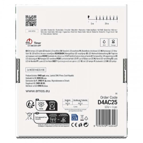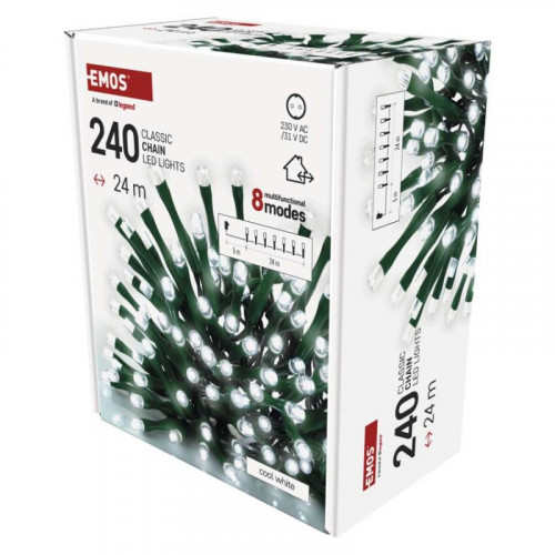 LED vianočná reťaz, 24 m, vonkajšia aj vnútorná, studená biela, programy, časovač