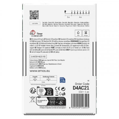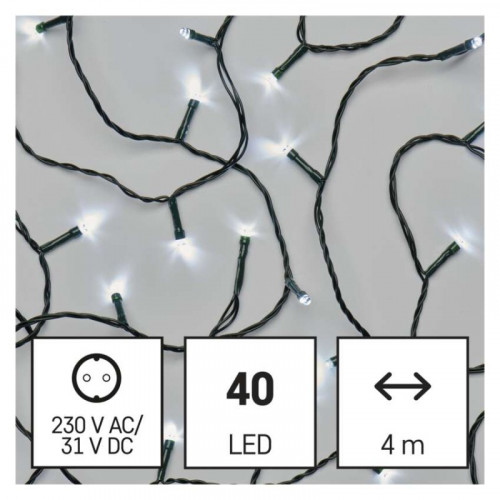 LED vianočná reťaz, 4 m, vonkajšia aj vnútorná, studená biela, programy, časovač