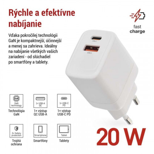 Univerzálny USB adaptér GaN do siete PD 20 W max.