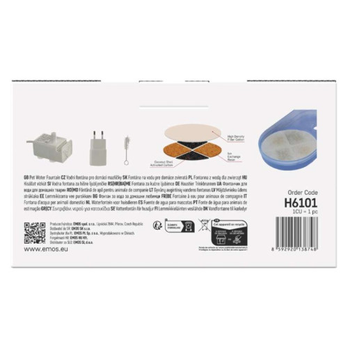 | obsah balenia | fontána, napájací adaptér, prívodný kábel, čerpadlo, filter k čerpadlu, bavlnený filter, čistiaca kefka |