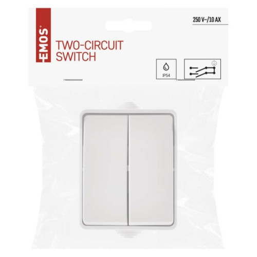 Vypínač nástenný č. 5 IP54, 2 tlačítka