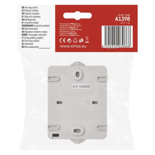 Vypínač nástenný schodiskový č. 1,6 IP54, 1 tlačidlo