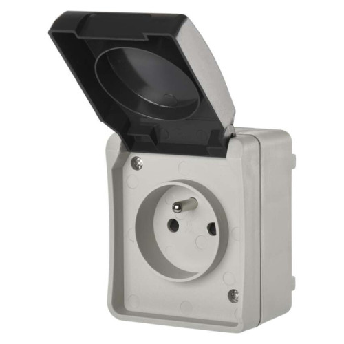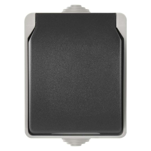 Zásuvka nástenná, šedo-čierna, IP54