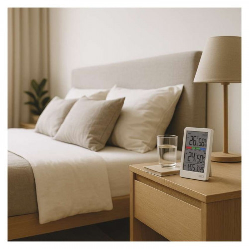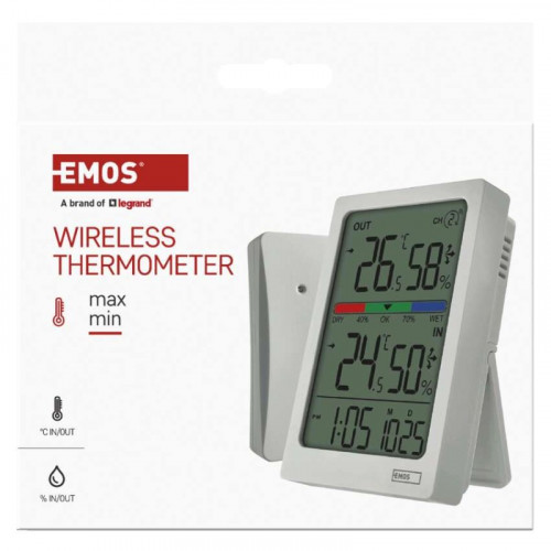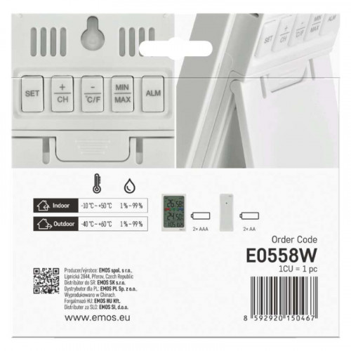 Digitálny teplomer s vlhkomerom, bezdrôtový snímač, budík, dátum E0558W