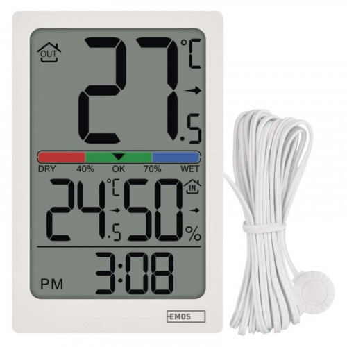 Digitálny teplomer s vlhkomerom, drôtový snímač, budík E0558P