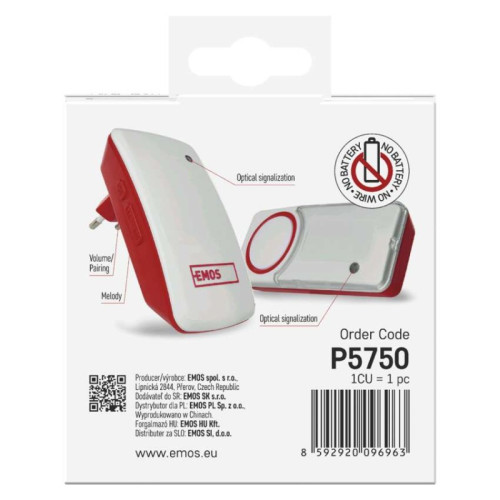 Domový bezdrôtový zvonček bez baterie P5750 do zásuvky