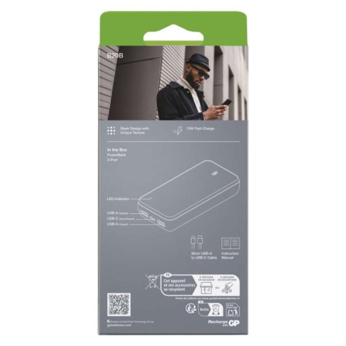 Power bank GP B+ Series, 20 000 mAh, 15 W, čierna